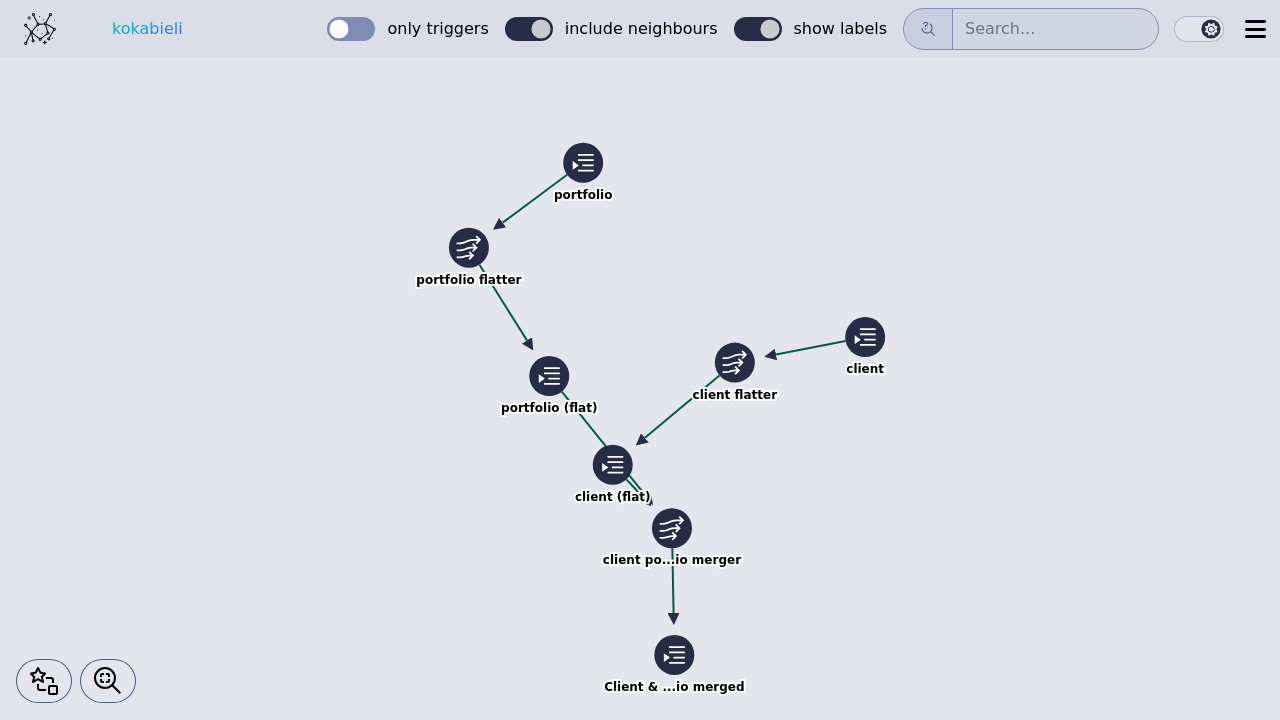 Kokabieli allows teams to work independently on their own data flows and to share them with other teams. It allows to combine data flows from different teams to a complex data flow.